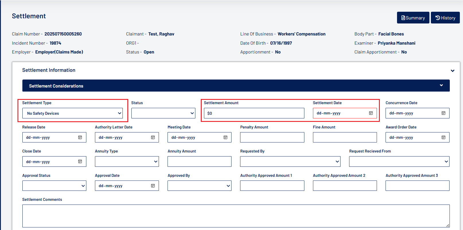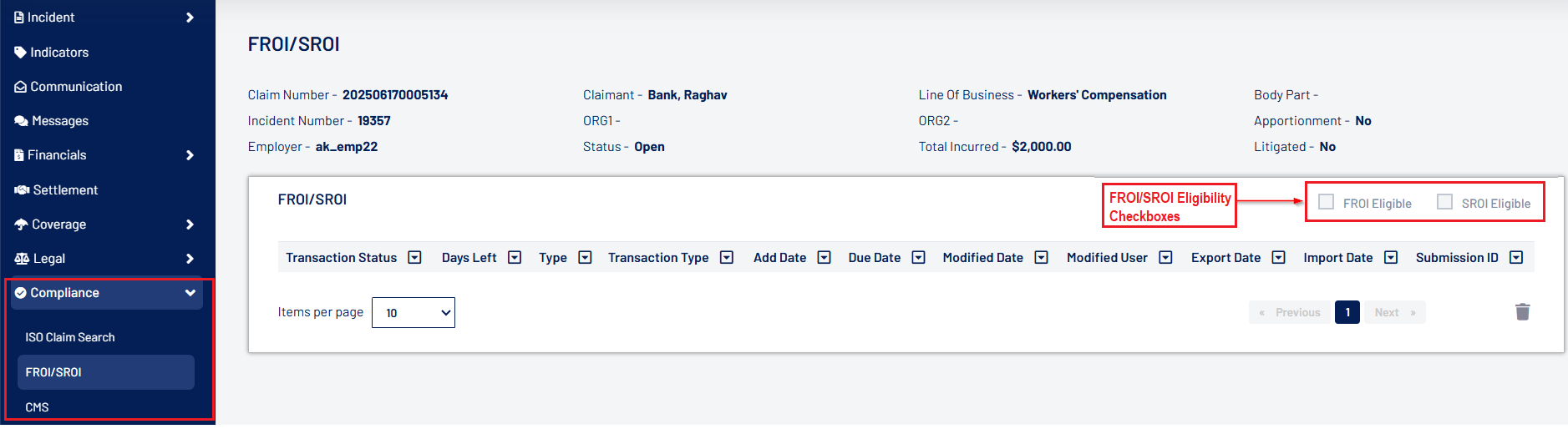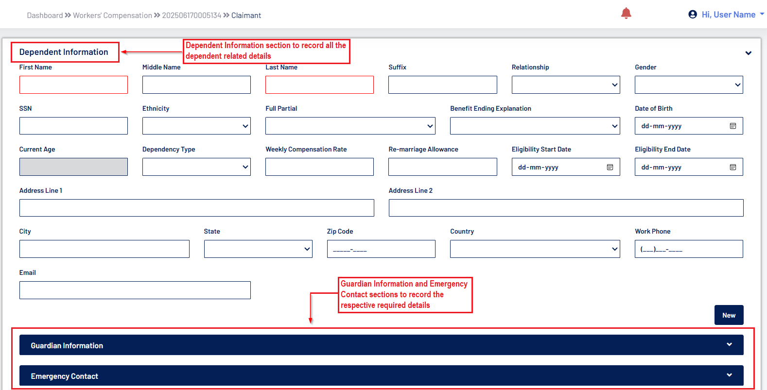 - If the claimant is an individual, the First Name and Last Name will be displayed.