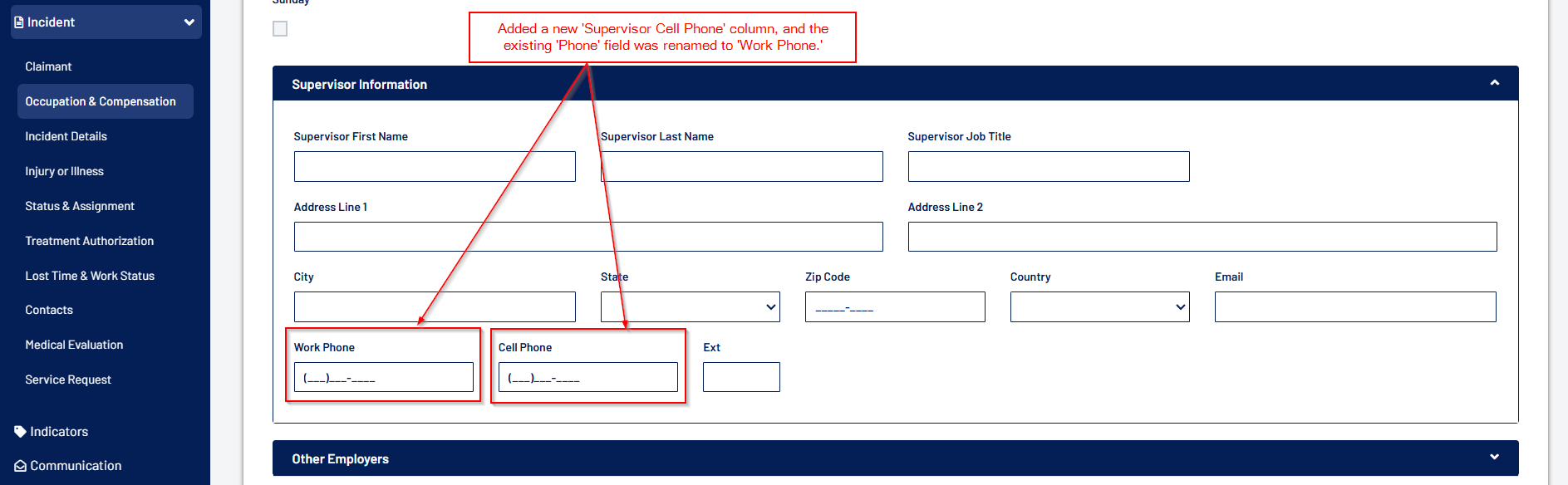 - Following new fields have been added to the Employer screen for visibility and maintenance: Employer ID (Read-Only), Employer Group, Occupation Group, and Fiscal Year.