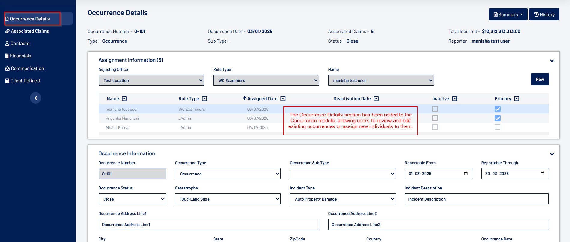 The introduction of the Occurrence module enables users to define and associate claims with specific occurrences, enhancing management of complex scenarios. Additionally, user security updates offer more control over access and permissions, ensuring data security.