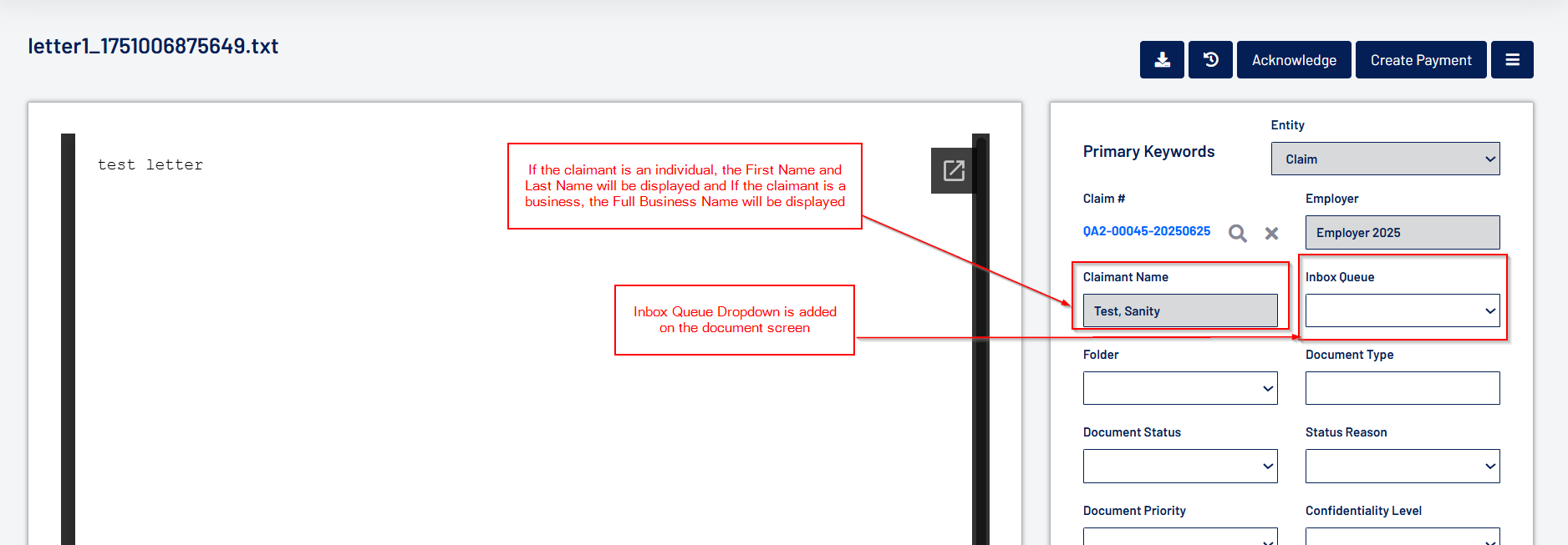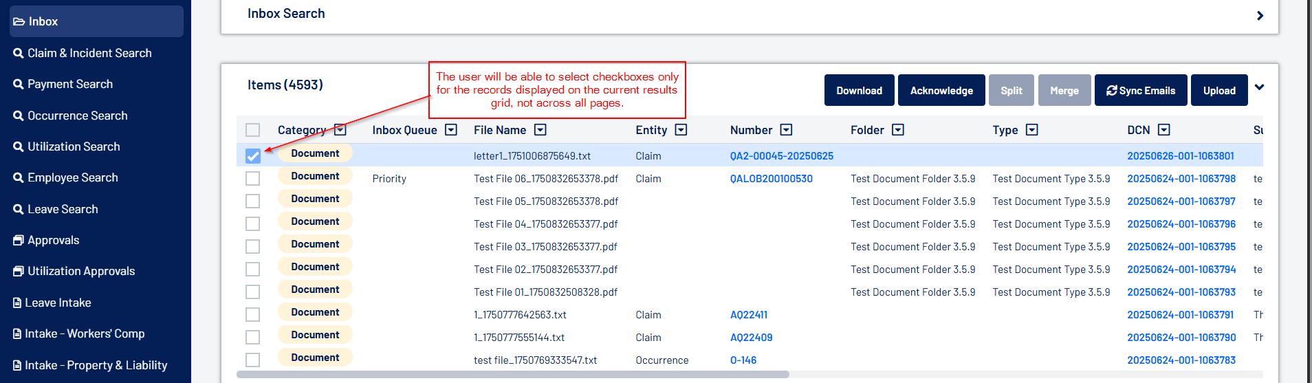 - Acknowledgement enhancements have been made to the Inbox screen. The key highlights include: