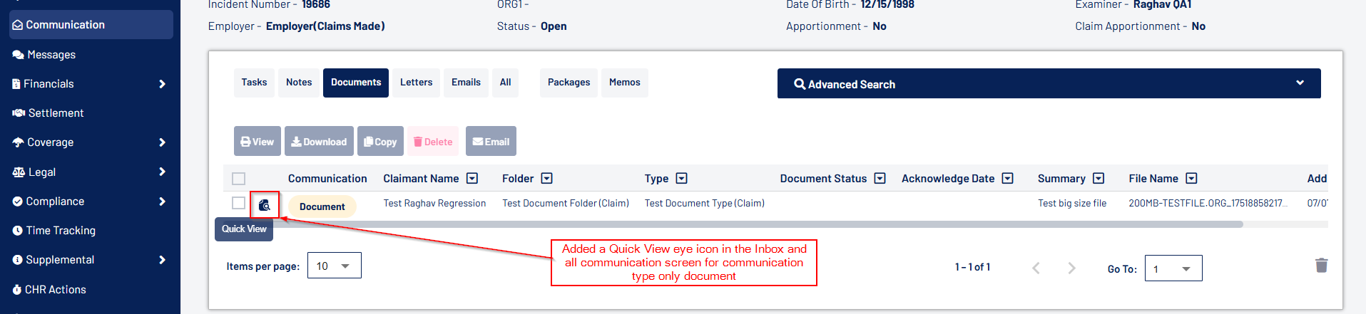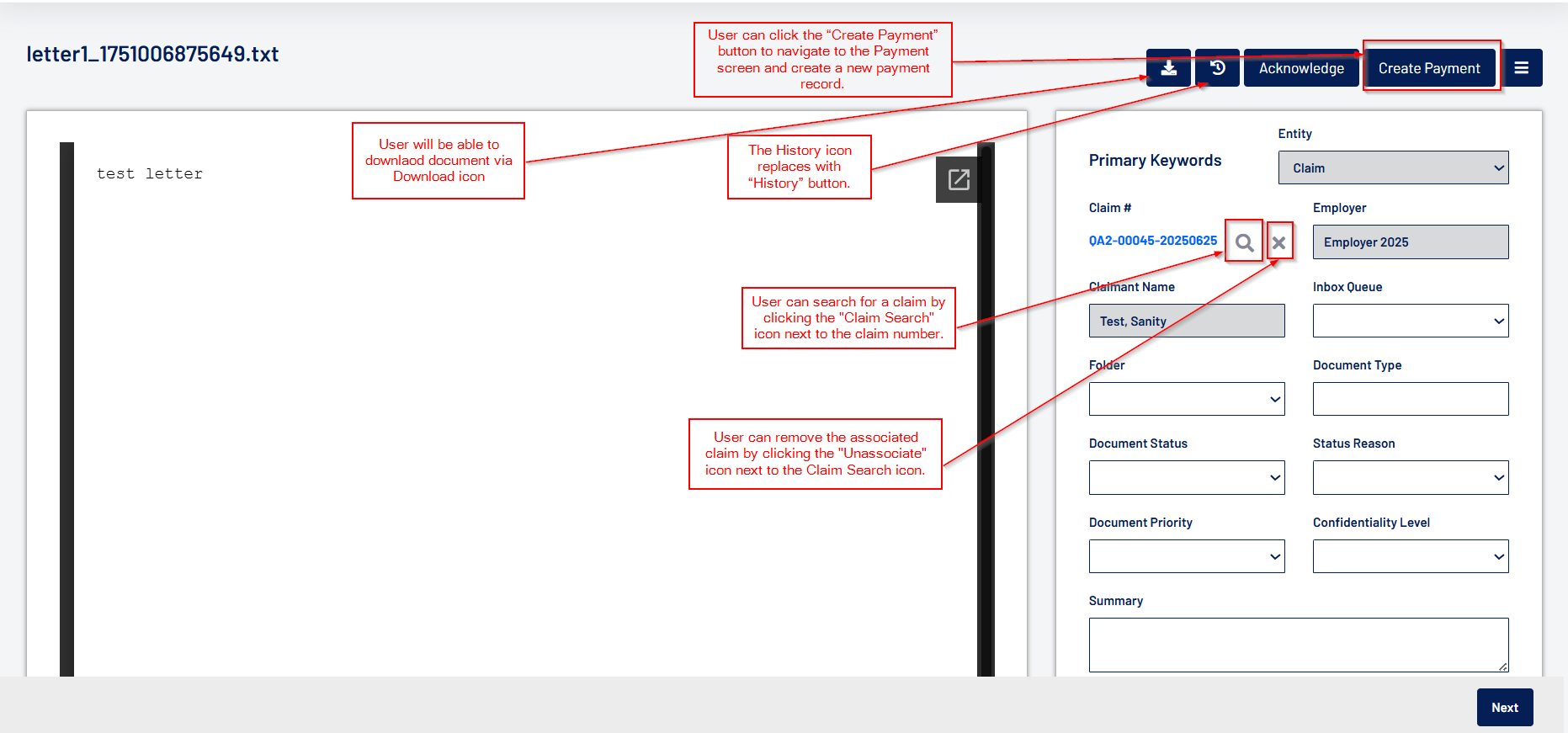 - Documents can now be downloaded via the “Download” icon.