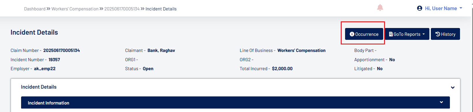 - Each Occurrence Number in the resulting grid is a hyperlink that, when clicked, opens a detailed view of the occurrence in a new tab.