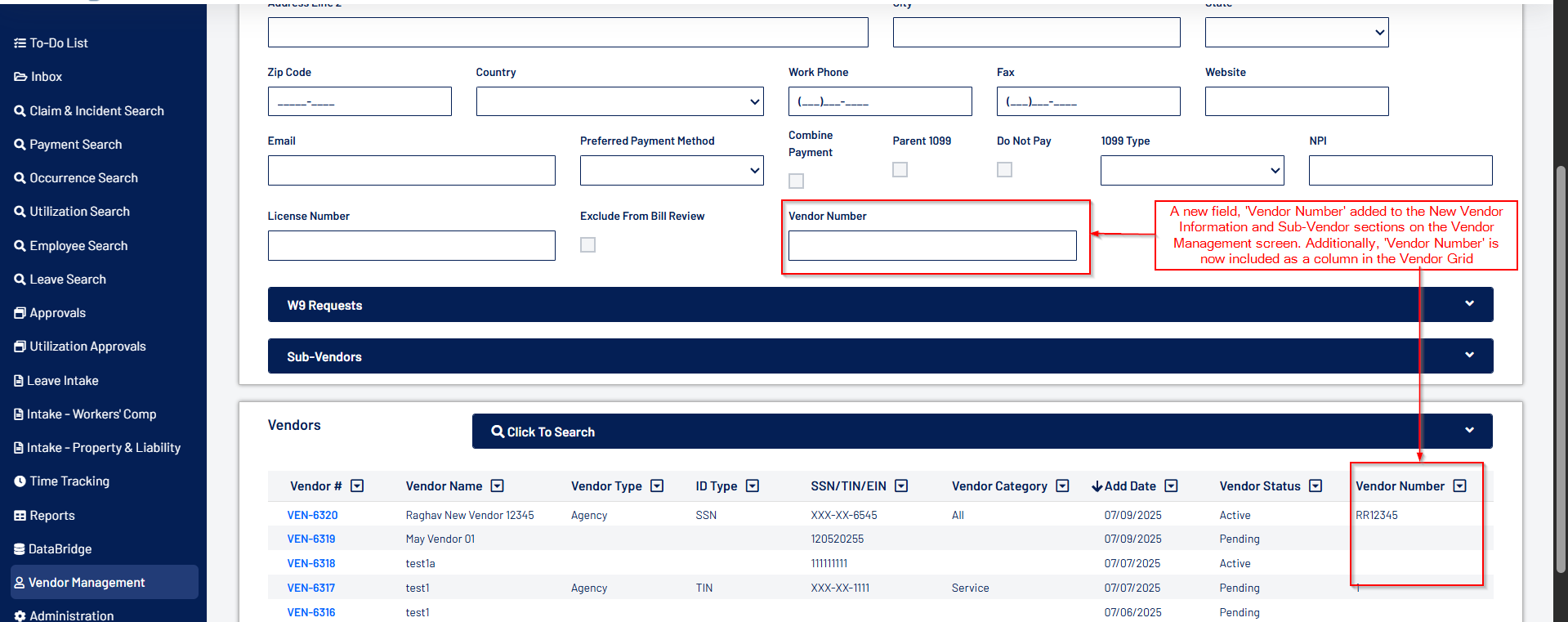 - A new field, "Vendor Number", has been introduced to enhance vendor identification and tracking