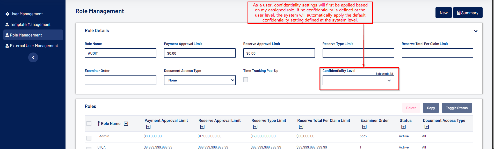 - Confidentiality settings can now be configured at the role level. The system will prioritize user-level settings, defaulting to system-level settings if no user-level configurations are specified.