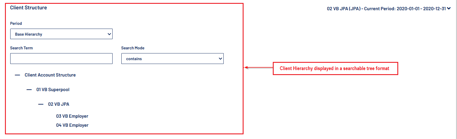 - On the Client Details screen, the client structure accordion will now display client hierarchy in a searchable tree format.