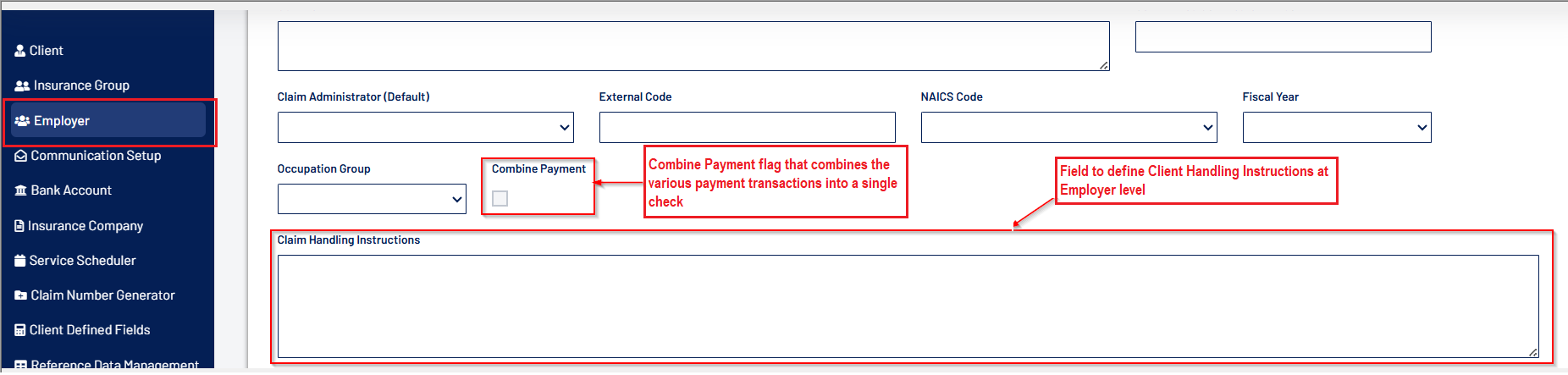 - A new “Combine Payment” flag is added to the Employer screen. Activating this flag will combine the various payment transactions for the injured worker into a single check.