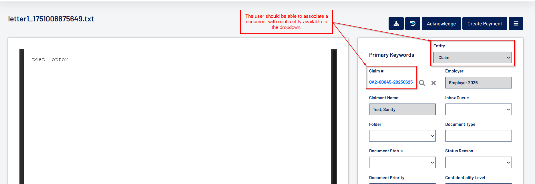 - Document Status and Document Priority are added as fields in the Primary Keywords section, with configurable dropdown values.