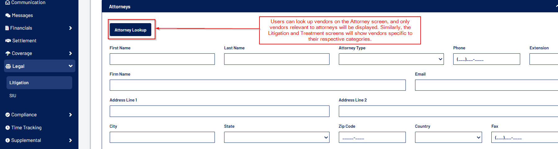 - The Vendor Lookup on the Treatment and Attorney screen will only display vendors related to that screen.